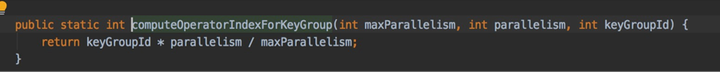 然后,key group 会按照规则被分发到每个 task 上,代码示例如下: Task->String.valueOf(KeyGroupRangeAssignment.computeOperatorIndexForKeyGroup(maxParallelism, parallelism, keyGroup));
