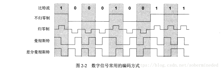 - 曼彻斯特编码:位周期中心的向上跳变代表 0,位周期中心的向下跳变代表 1。但也可反过来定义。