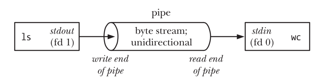 当从一个进程连接数据流到另一个进程时,我们使用术语管道 (pipe),也叫无名管道 (unnamed pipe)。通常是把一个进程的输出通过管道连接到另一个进程的输入。