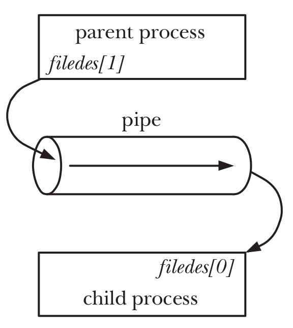 成功的 pipe() 调用会在数组 filedes 中返回两个打开的文件描述符:一个表示管道的读取端 (filedes[0]),另一个表示管道的写入端 (filedes[1])。