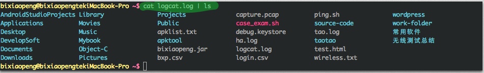 #5.读出logcat.log通过管道传给ls,由于ls不支持标准输入,因此之前读入的数据丢失