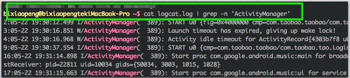 #1.读出logcat.log文件的内容,通过管道转发给grep作为输入内容