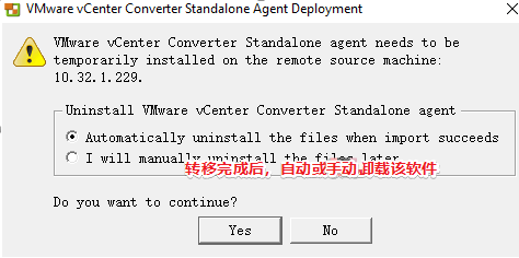 3、弹出的对话框,建议选择自动卸载“vmware vcenter converter standalone”软件