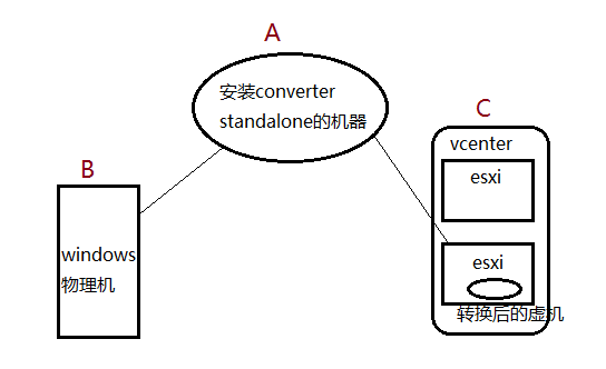 A是一台windows机器,安装了“vmware converter standalone”软件