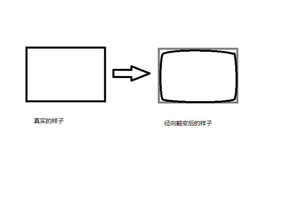 径向畸变:由于一般透镜在制作过程中,由于工艺问题,所以光在离中心越远的地方折射的角度会越大,导致成像就是产生了"鱼眼"效果,导致了径向畸变,如图所示。一般来说,贵一点的镜头径向畸变的影响会小一点。可以采用泰勒级数展开式来矫正,至于为什么,由于知识较少,无法解释。