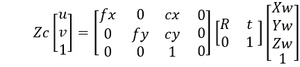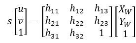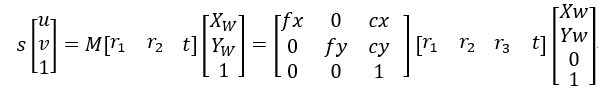 由于世界坐标是我们自己定义的,为了计算方便,我们可以将棋盘格平面定义为Zw=0平面,定义第一个角点为原点,然后根据边长信息可以推导出所有的世界坐标,当然所有的坐标的Z=0,则公式变形为