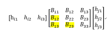可以发现矩阵B是一个对称矩阵,那么他只有6个元素。两个约束条件有统一的表现形式