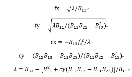 得到b之后便可以求解内参数了。至于怎么从B到内参,我实在是搞不懂,只能直接套用结论了。大致上是又莫名其妙多了个缩放因子