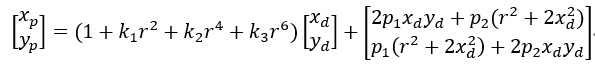到目前为止,我们一切的推导都没有考虑畸变参数。我们现在通过前面求解得到的相机内外参数,来解大的系统方程,得到畸变参数。