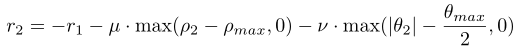 第一项是跟踪器奖赏值的负数,这样设置的原因很容易理解,r1越小,表示对跟踪器的惩罚越大,也就是说跟踪器的性能不好,此时,对于r2来说,r1越小,r2就越大,表示目标逃跑的越好,很自然的体现了两者性能的相对性。后面两个惩罚项一个限定不要距离跟踪器太远,一个限定不要逃离跟踪器的视野太远,其他参数的设置参照跟踪器的参数理解。