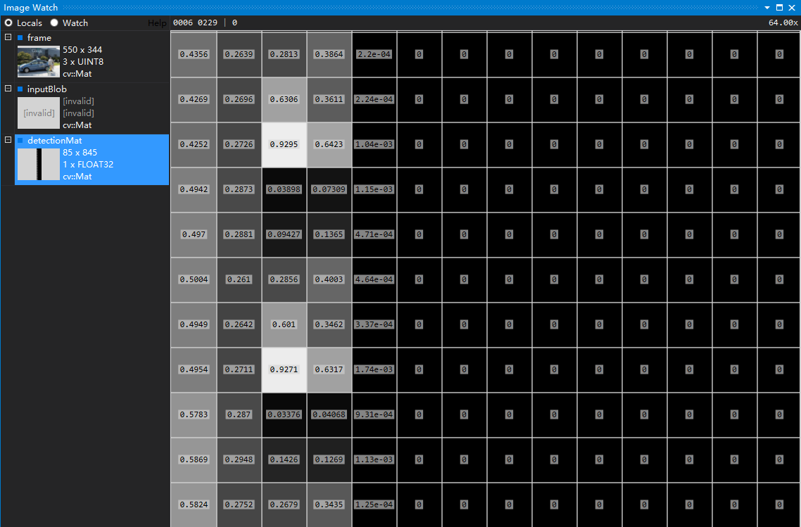 float *prob_array_ptr = &detectionMat.at<float>(i, probability_index);