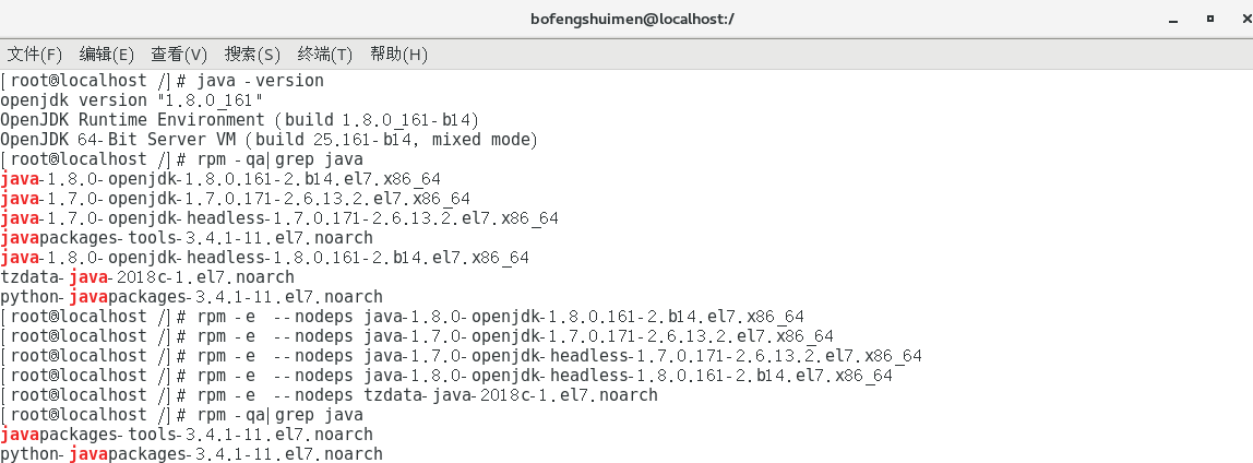 比如已经被我强制删除的:tzdata-java-2018c-1.el7.noarch