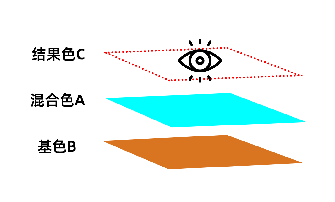 具体来说,就是指混合色 A 通过混合模式叠加到基色 B 上产生最终的结果色 C。