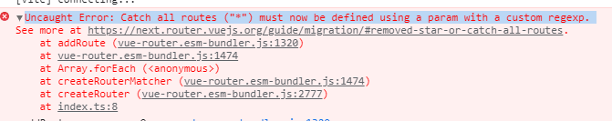 2. Uncaught Error: Catch all routes ("*") must now be defined using a param with a custom regexp.