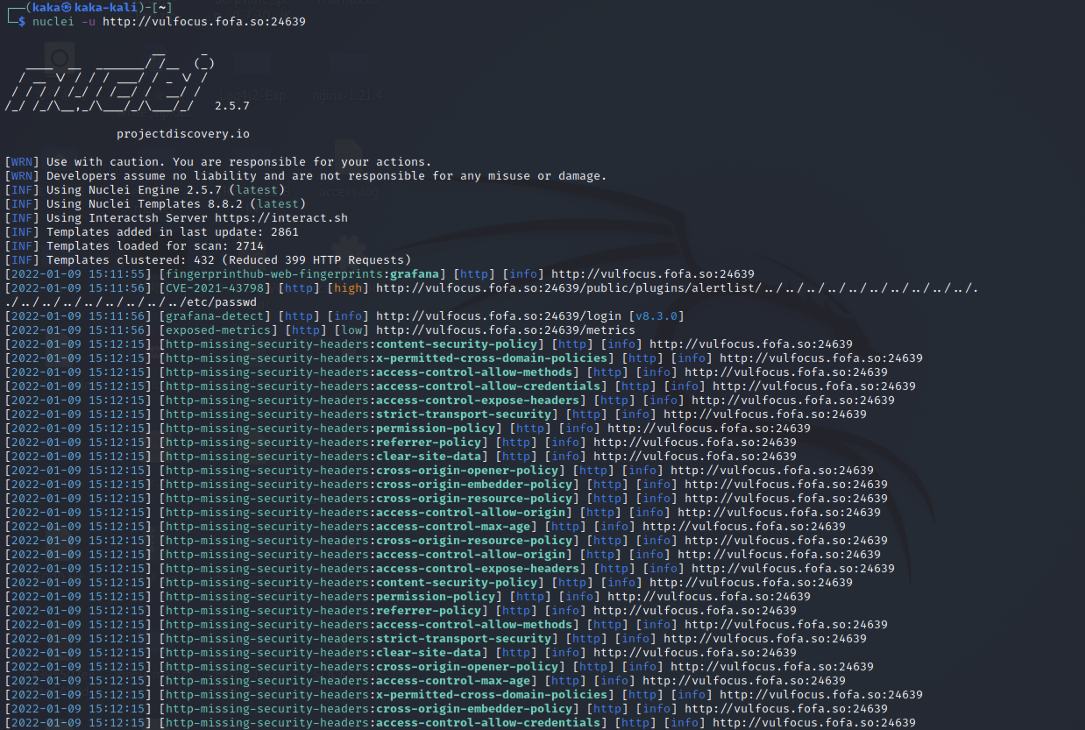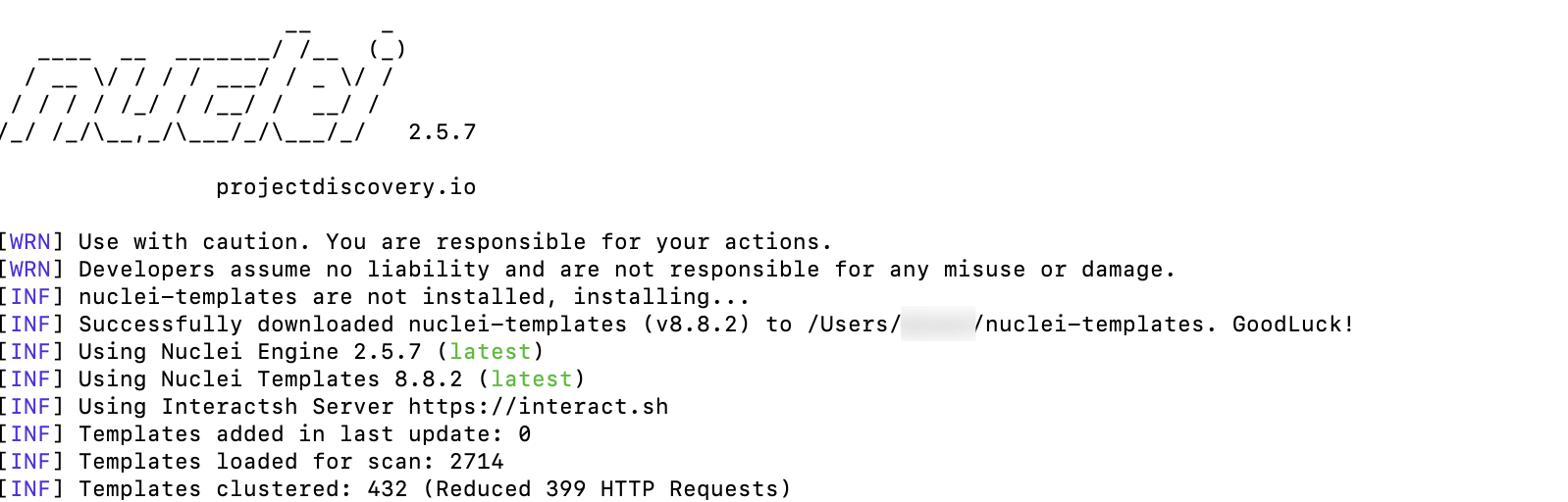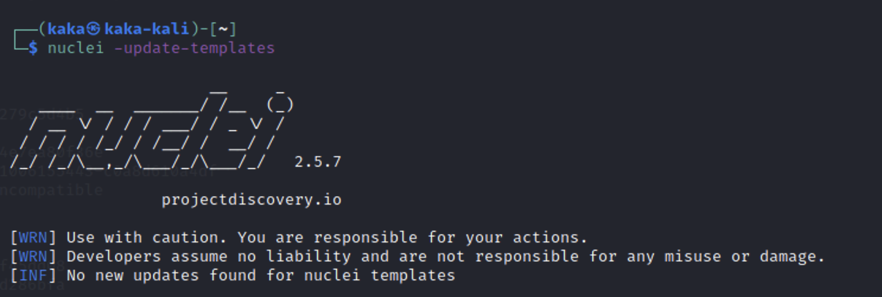 同时自v2.4.0版本以来,Nuclei内置了对自动更新/下载模板的支持,初次运行Nuclei会自动下载最新的nuclei-templates到当前用户根目录(/home/当前用户/nuclei-templates)。