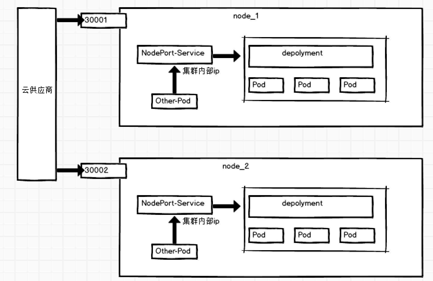 在 ClusterIP基础上为 Service在每台机器上绑定一个端口,这样就可以通过 : NodePort来访问该服务。