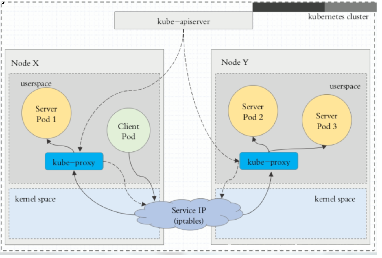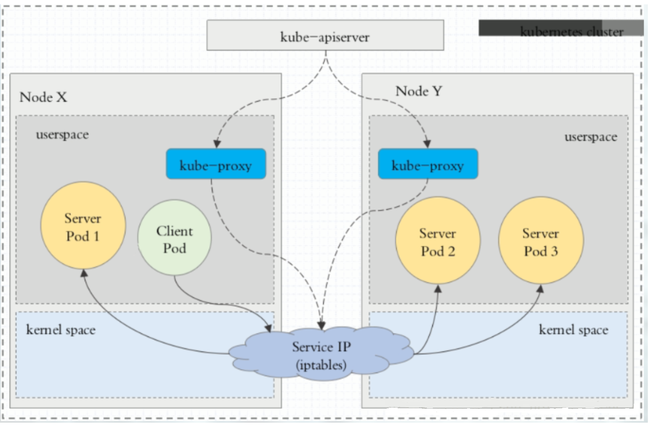 iptables实现的 iptables规则是通过kube-proxy写入的apiserver通过监控kube-proxy去进行对服务和端点的监控kube-proxy通过pod的标签(lables)去判断这个断点信息是否写入到Endpoints里