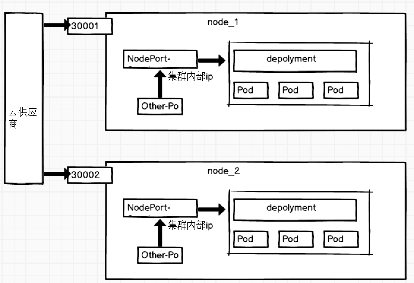 LoadBalancer和 NodePort其实是同一种方式。区别在于 LoadBalancer比 NodePort多了一步,就是可以调用 Cloud provider去创建 LB来向节点导流。