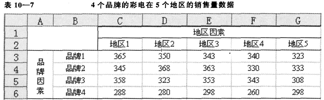 方差分析是通过对数据误差来源的分析来判断不同总体的均值是否相等,进而分析自变量(分类型)对因变量(数值型)是否有显著影响。可分为单因素方差分析,双因素方差分析。如:
