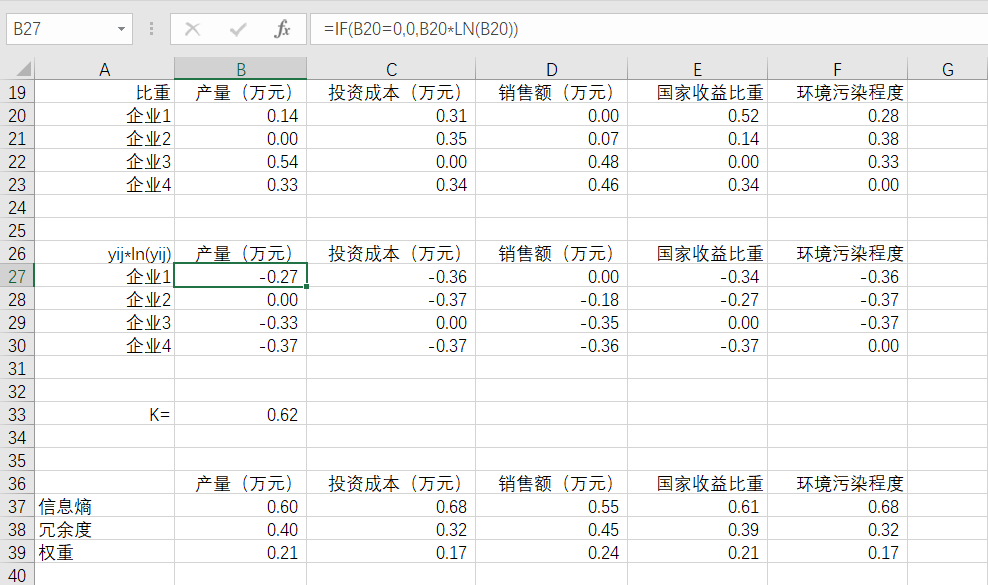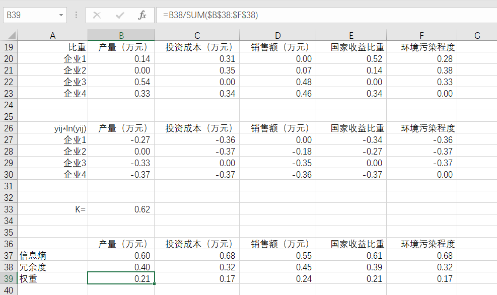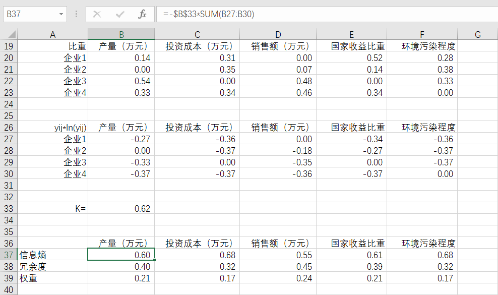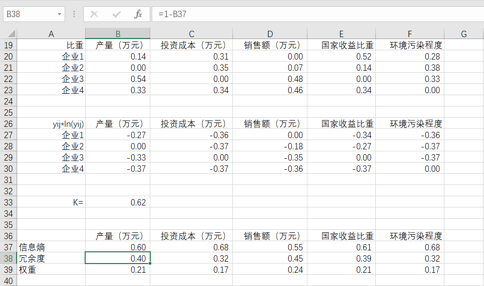 以上就是爱撒娇八宝粥最近收集整理的关于权重的计算(熵权法)Ⅰ.标准化处理Ⅱ.计算比重Ⅲ.计算信息熵Ⅳ.计算冗余度Ⅴ.计算权重Ⅵ.举例演示的全部内容,更多相关权重内容请搜索靠谱客的其他文章。