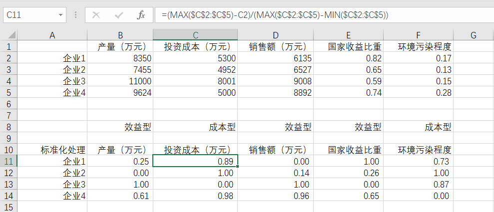 vi.i. 标准化处理(一般只用正向指标的计算公式处理数据)