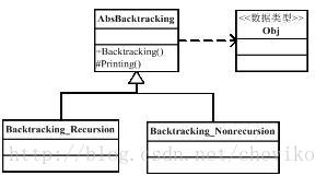 递归与顺序执行方法仅仅是实现方法Backtracking(int i)不同,其余的完全一致,因此可将具体实现延迟至子类中。模板方法使得自雷可以改变一个算法的结构即可重定义该算法的某些特定步骤,因此采用模板模式。类图结构如图3所示: