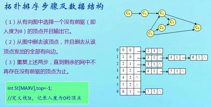 拓扑排序的步骤及数据结构: