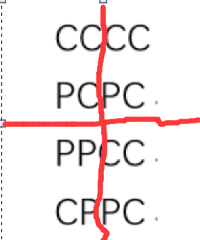 用最初的可以拼成第2个,把第2个分成4部分,左下角和第一个相反,也就是P变为C,C变为P,其余相同。