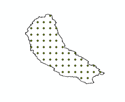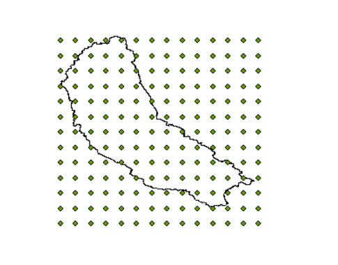 流程:导入点数据,生成xy信息,导出数据为shp①,地理处理(相交)②,点转栅格(设置合适的像元大小)③