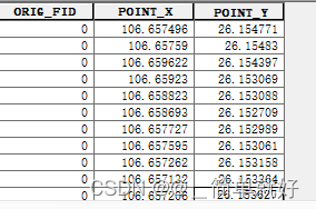 至于怎么提取拐点坐标,在ArcGIS里的做法也是很简单,就是要素折点转点,然后在【添加XY坐标】,最终的效果如下