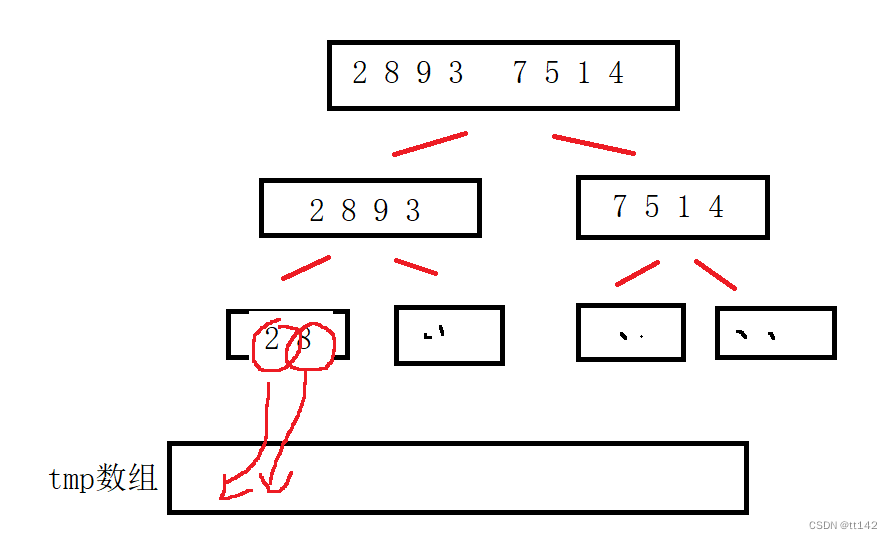 每次分到足够小之后就取小的尾插到tmp这块空间,然后足够小的几个数排完之后就拷贝回去即可