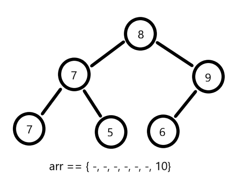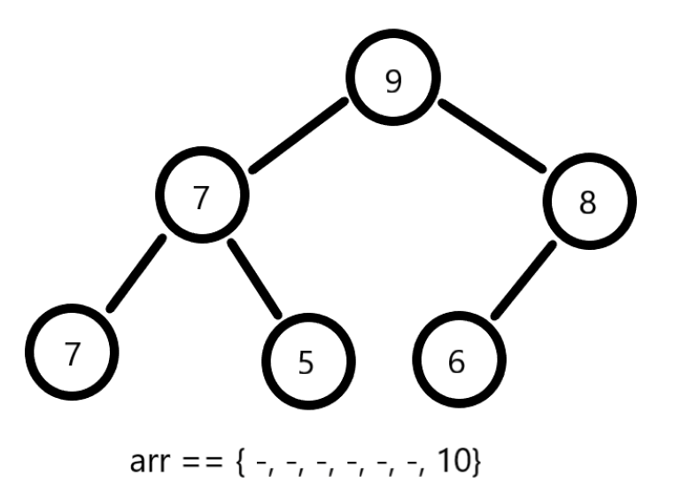 因为是排序算法,所以这里不用二叉树结构实现堆结构,使用数组模拟并将其想象成一棵树: