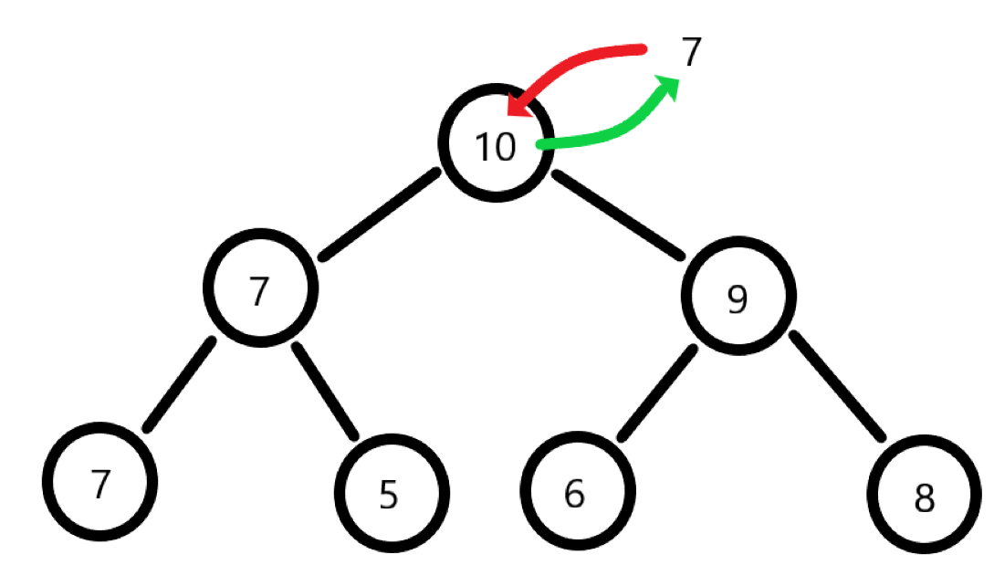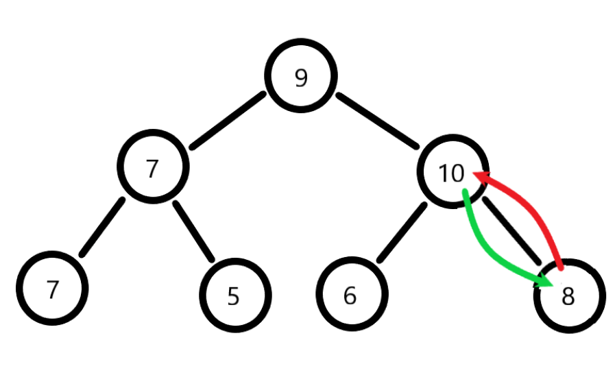 假如上图是一个数组arr,想要在该数组末尾插入一个数字10,并且变更数组元素的顺序使得堆结构依然成立。
