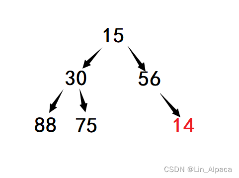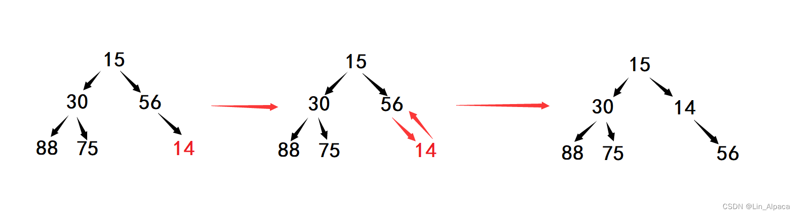 但仅仅插入是不行的,为了保证堆依然成立,我们还需要对数据的位置进行调整。(这里构建的是小堆)