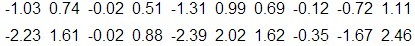 然后我们反过头来看,我们可以将左奇异向量和右奇异向量都取后2维(之前是3维的矩阵),投影到一个平面上,可以得到: