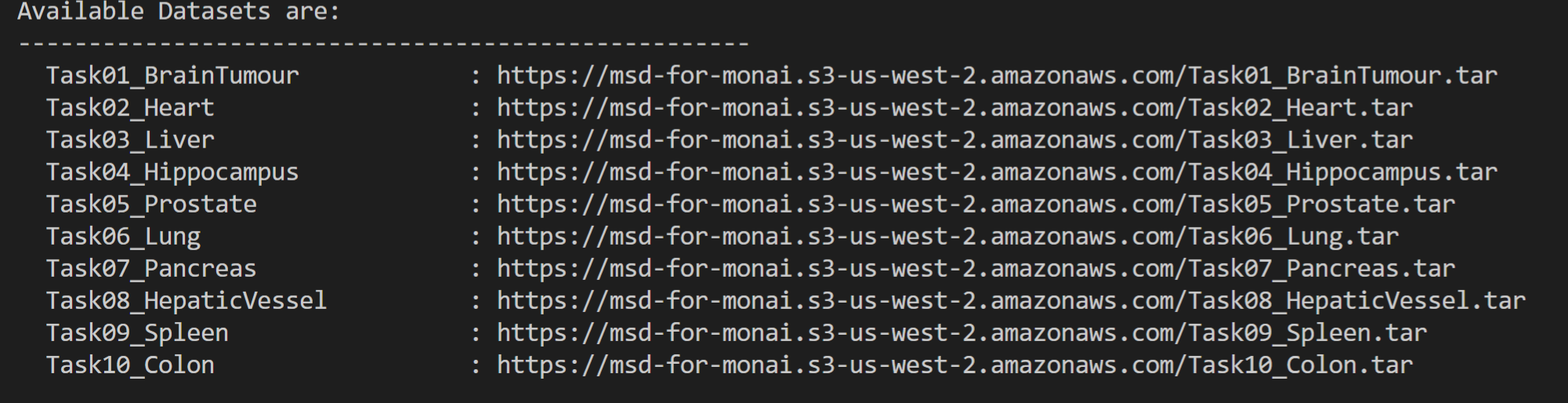 monailabel datasets --download --name Task09_Spleen --output datasets