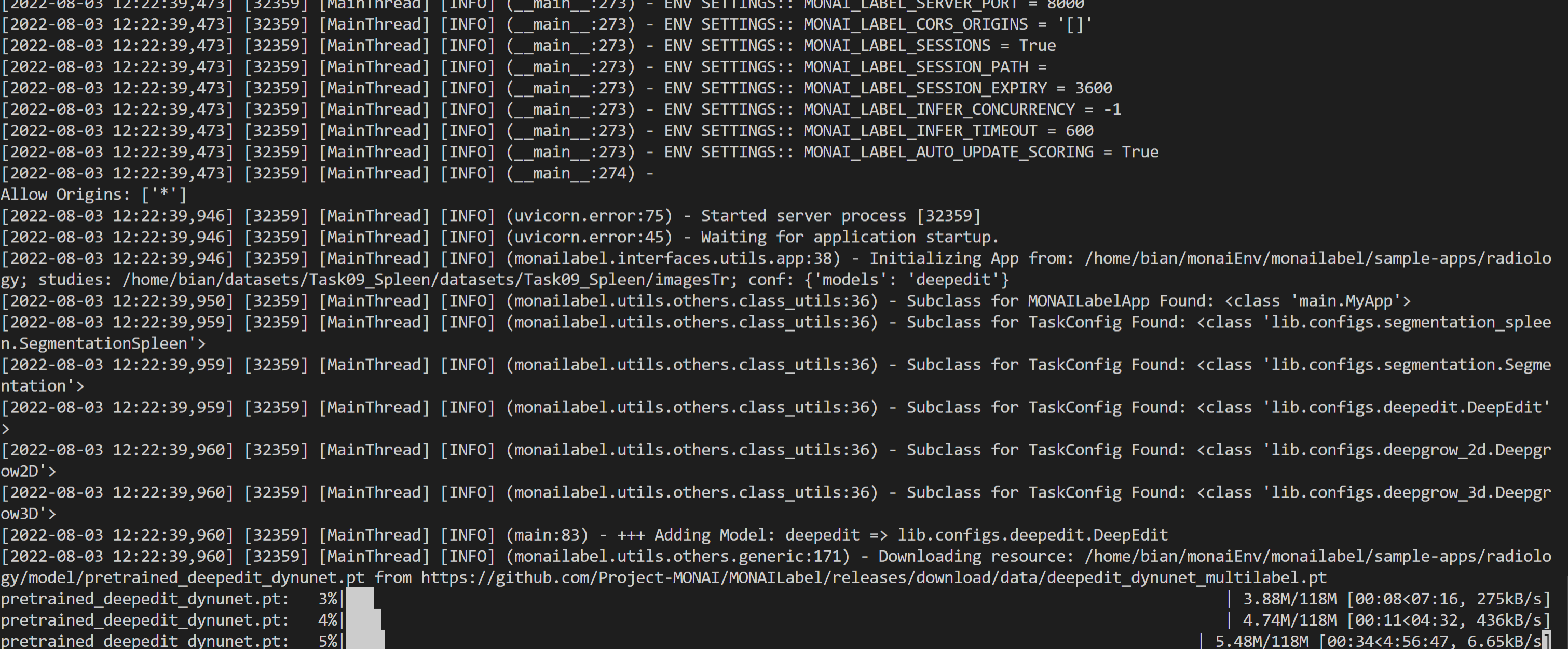 monailabel start_server --app apps/radiology --studies datasets/Task09_Spleen/imagesTr --conf models deepedit