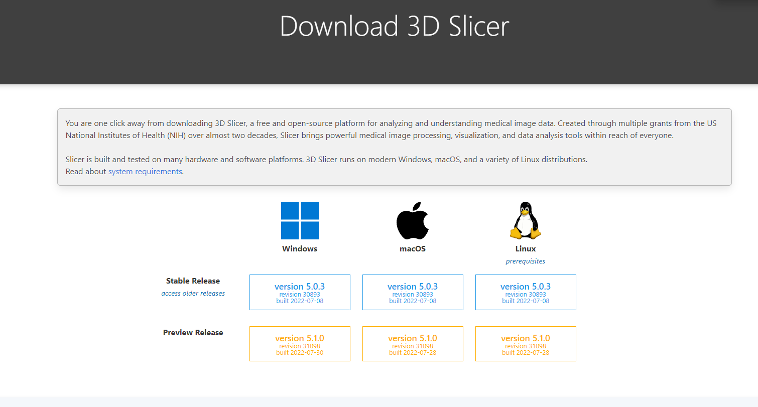 注意:3D Slicer版本要求>=4.13版本以上.我下载的是当前的版本5.0.3