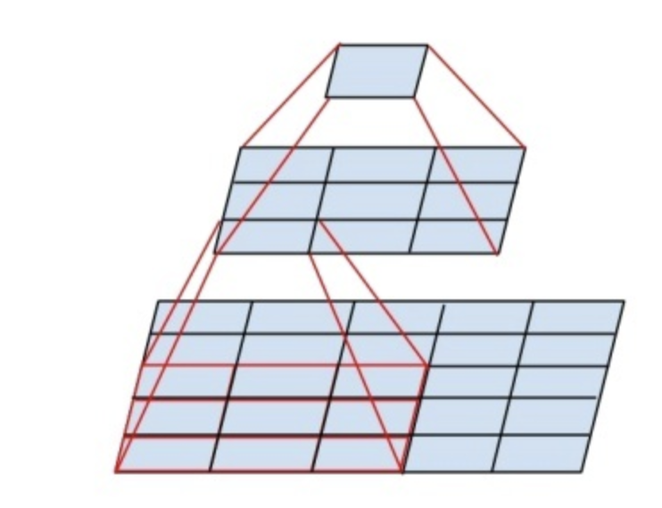 至于为什么使用3个3x3卷积核可以来代替7*7卷积核,推导过程与上述类似,大家可以自行绘图理解。