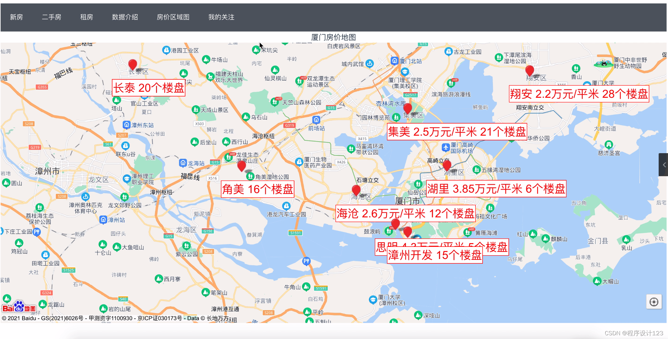 功能模块(请用文字描述,至少200字):使用爬虫技术爬取厦门房源信息,包括:新房、二手房租房信息。然后使用java后台框架开发管理后台,包括用户管理、房源信息管理(新房、二手房、租房信息)等内容,数据库使用mysql5.7,开发工具为idea。前端使用vue框架,主要功能包括:用户登录注册、房源信息查看、房源内容介绍、房源分布地图,个人信息关注等内容。