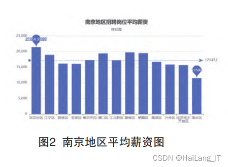 数据可视化分为后端调用和前端 展示两个方面,后端调用采用Spring Boot框架,对于MySQL数据库进行访 问,SQL查询采用Mybatis-plus插件简 化查询代码,然后根据查询结果编写 相对应的接口以供前端调用,后端数 据检测采用postman对于接口提供的数据进行核实;前端展示采用了Vue的框 架,展示内容分为详细信息展示与大 数据图表展示两个模块,通过Echarts 组件将数据库信息通过图表展示出 来,其中包括南京地区平均薪资展 示、地区招聘岗位数量展示等功能, 展示图表类型包括柱状图、饼图、雷 达图、南丁格尔玫瑰图、环图等。
