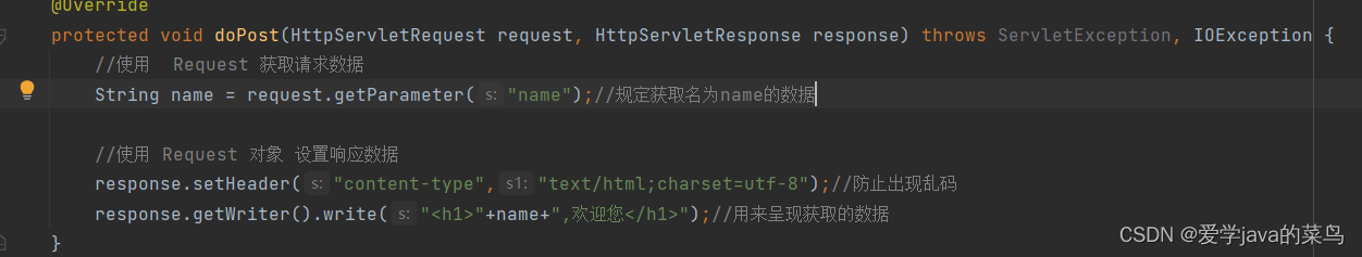 2、在继承了HttpServlet的doPost方法中写如下内容(含义写在注释中)