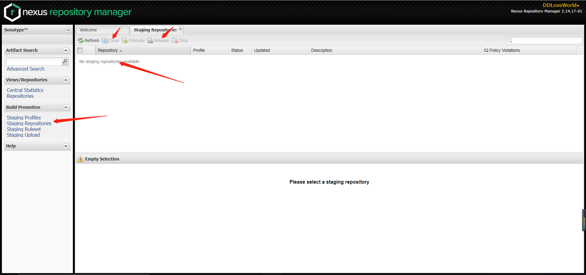 登录https://oss.sonatype.org,然后选择staging Repositories