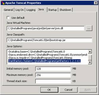 部署‘<ARTIFACTORY_INSTALLATION_FOLDER>/webapp’目录中的war文件到 ‘<TOMCAT_INSTALLATION_FOLDER>/webapps’目录中,在jdk1.6和Tomcat 6环境下不需要改变tomcat的配置,Tomcat 6会检测并部署它。