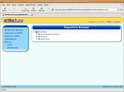 Artifactory——从http://www.jfrog.org/sites/artifactory/latest/ 下载和安装,当前最新版本是1.2.1-rc1,Artifactory是一个可以被安装到Tomcat中去的Web应用程序