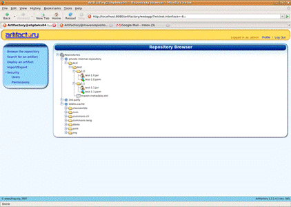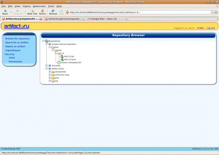 用浏览器登录到新的构件仓库,你会发现artifactory 已经下载并缓存了ibiblio上的构件。