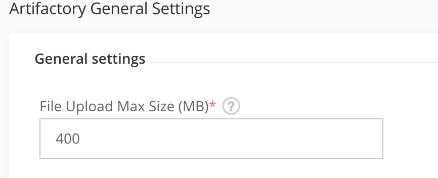 点击右上角账号,选择 Edit Profile—>Artifactory—>General—>Settings—>File Upload Max Size (MB) 重置上传文件的大小限制,我们改成400M,点击Save。如下图,修改完后,再上传我们的Gradle的zip就没有问题了。