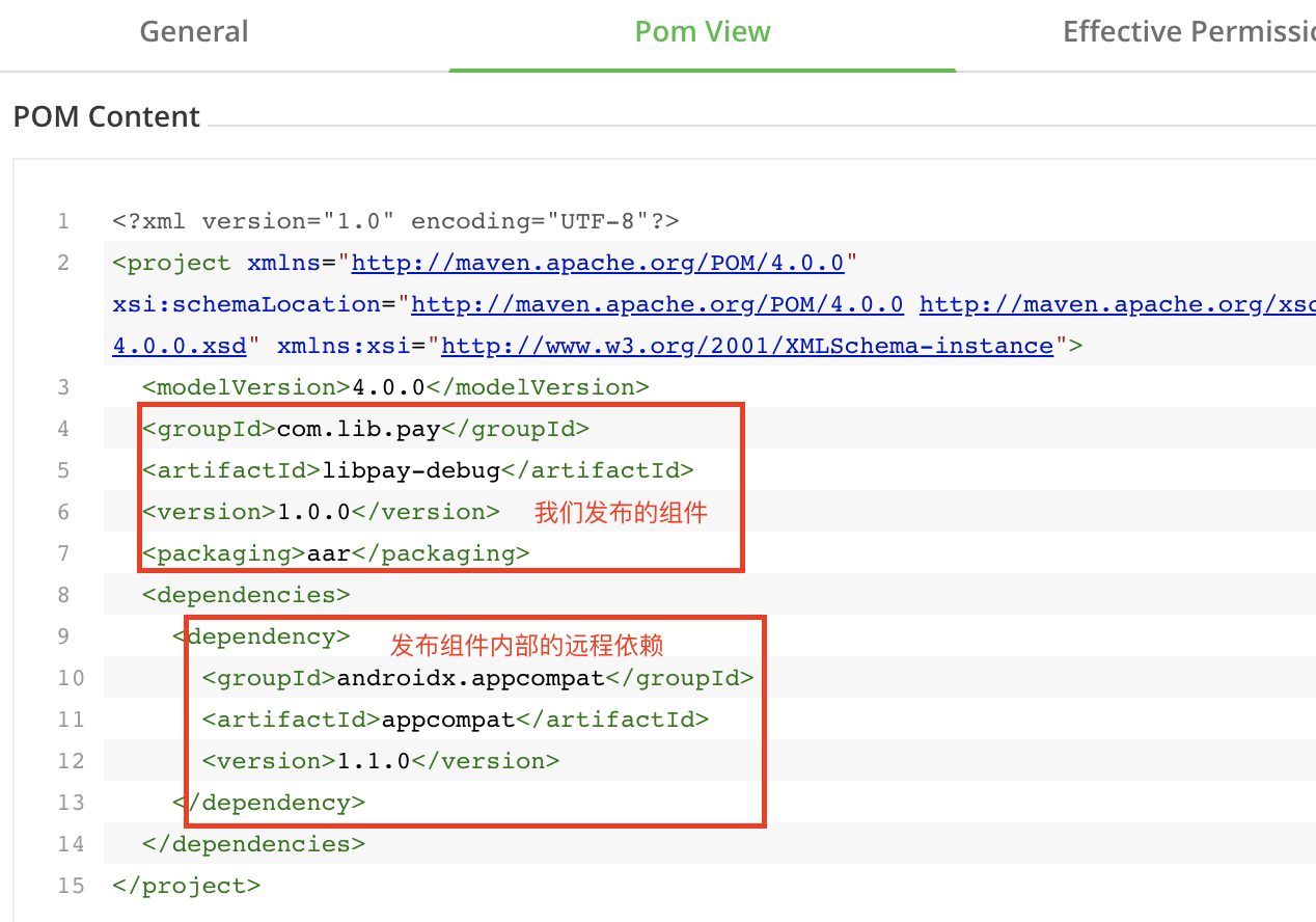 可通过pom文件,查看到发布组件的信息及其远程依赖