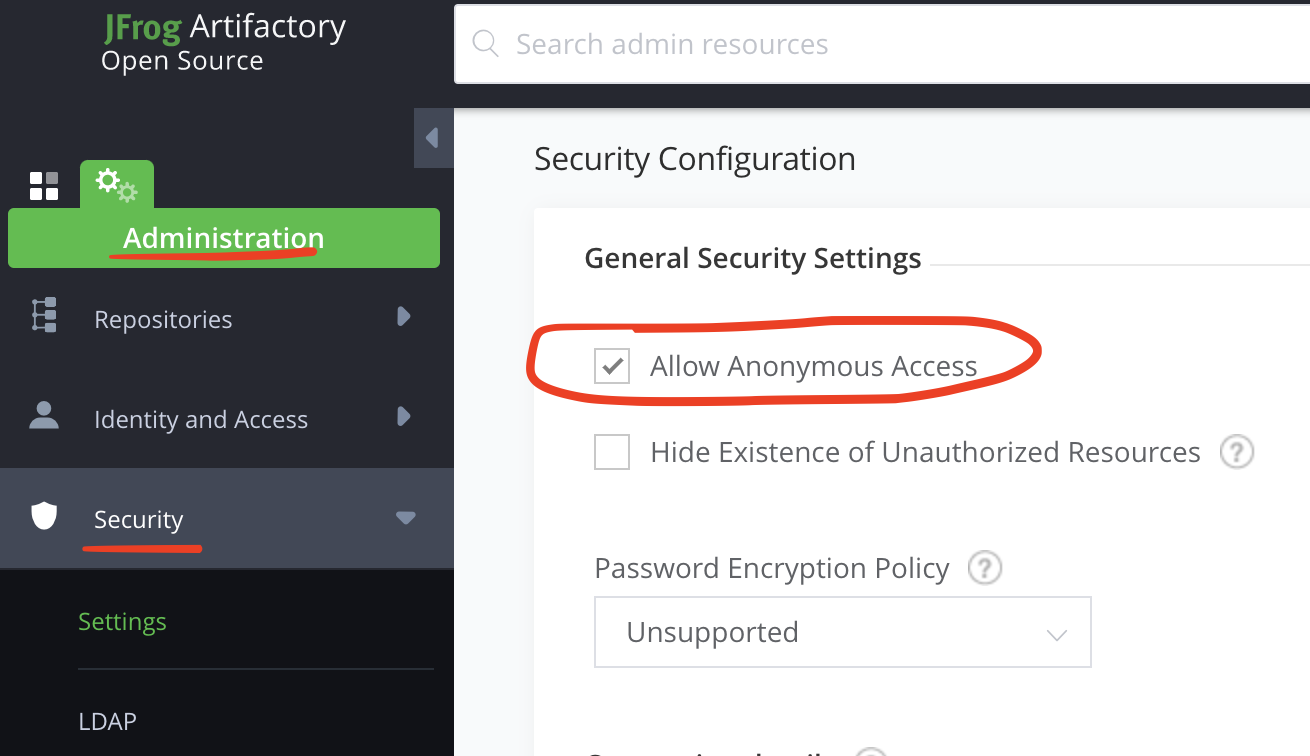401,应该是无权限访问,是由于Artifactory拒绝了非鉴权用户的访问,我们需要修改Artifactory的安全策略为匿名用户可访问即可