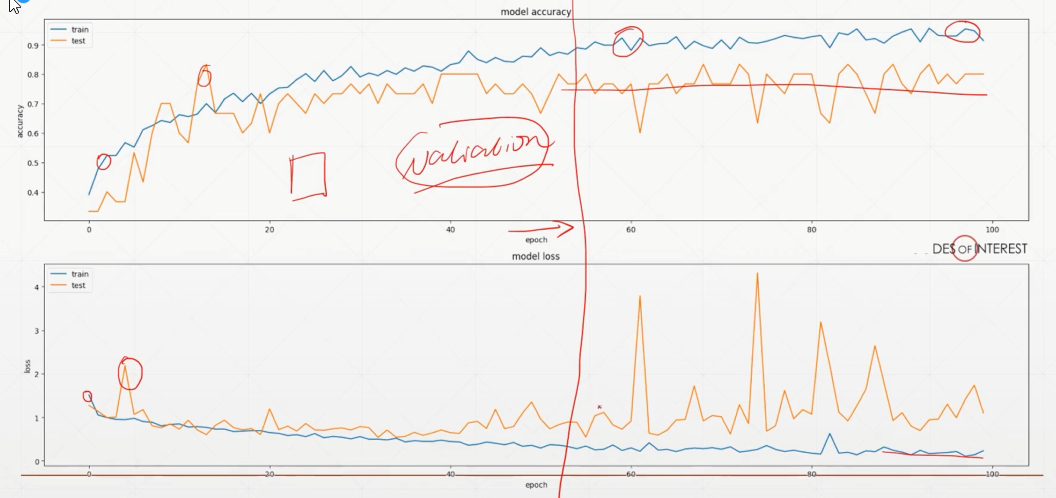 网络刚开始训练时,loss会下降,准确性会上升,这时的网络参数在学一些本质的特征,但随着学习的次数增加,会发现尽管准确率上升,但有效性却不再上升,并且损失函数还会偶尔剧烈波动。这是因为后面网络参数不再学医本质东西了,而是开始抄袭数据,使之变得无效。因此网络并不是训练越久越好。